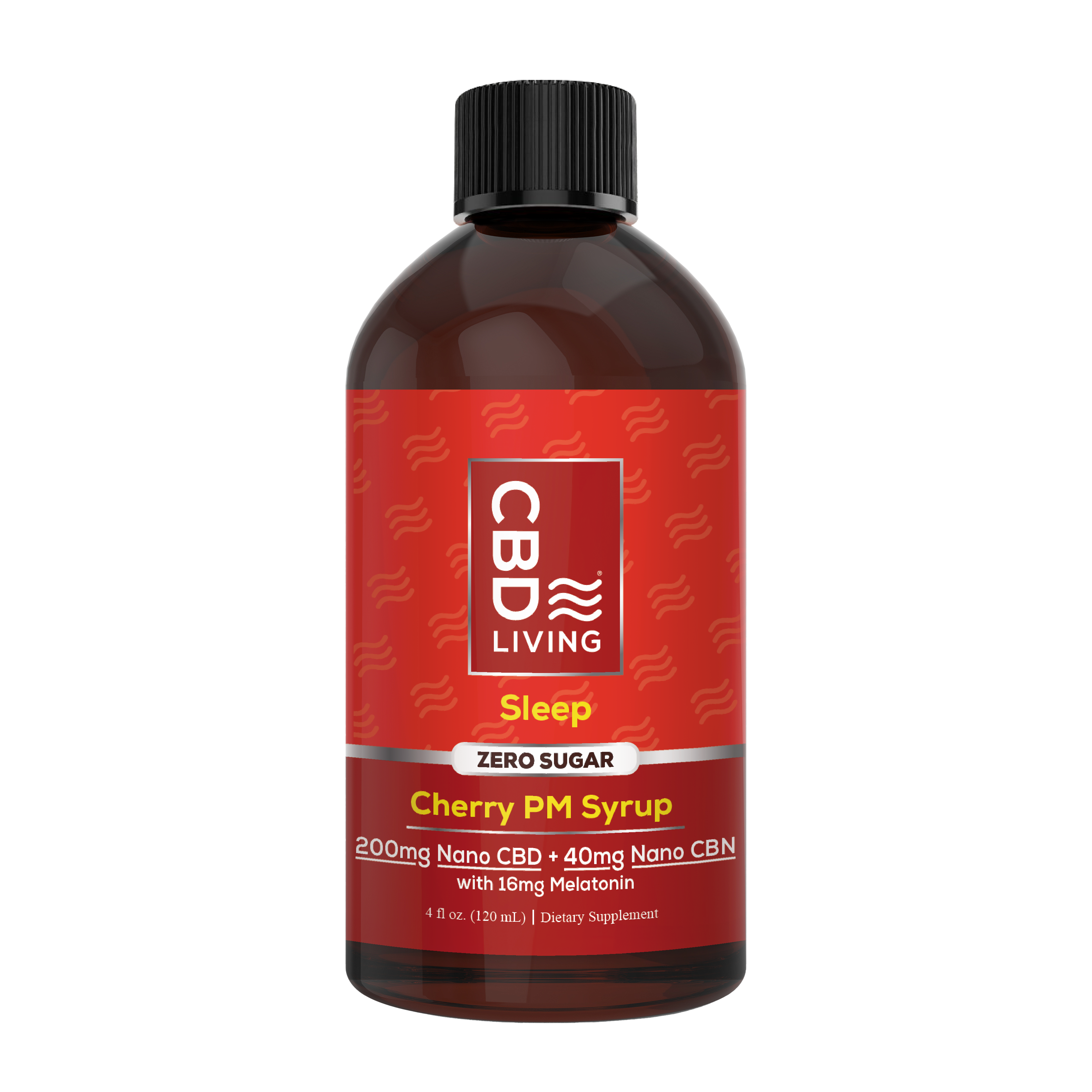 CBD Living Vegan PM Syrup combines 200 mg Nano CBD, 40 mg Nano CBN, and 16 mg Melatonin for a natural sleep solution. Each tablespoon provides 25 mg Nano CBD, 5 mg CBN, 2 mg Melatonin, 35 calories, and 0 sugar.